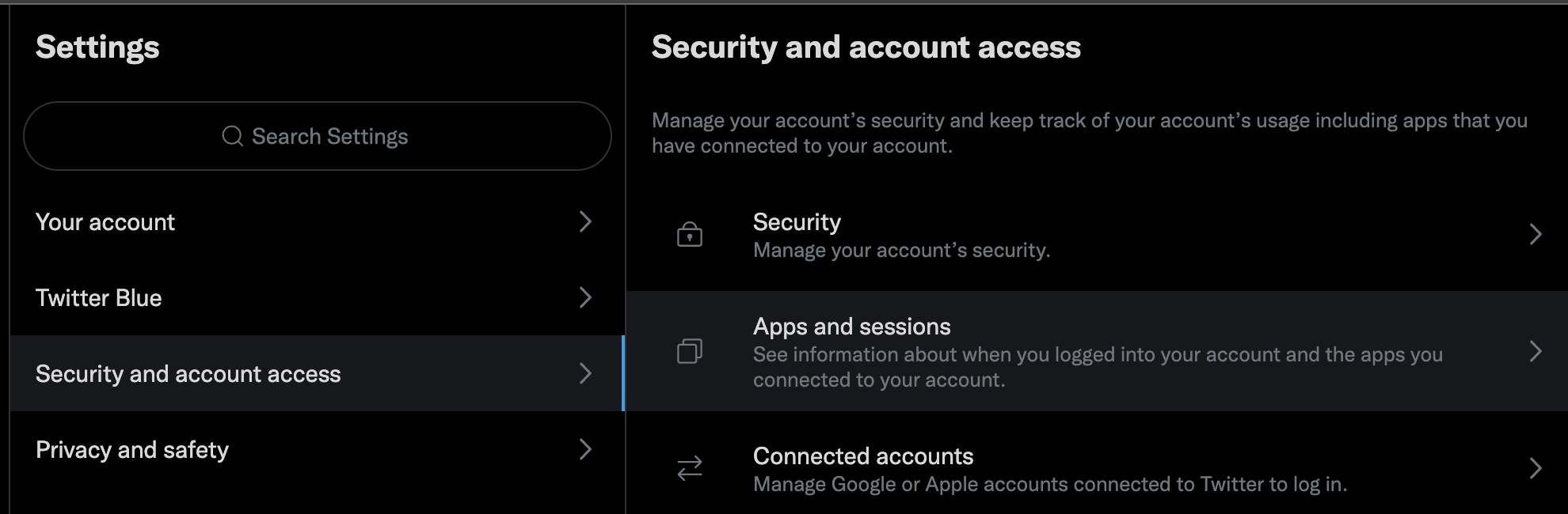 Twitter security and acct settings