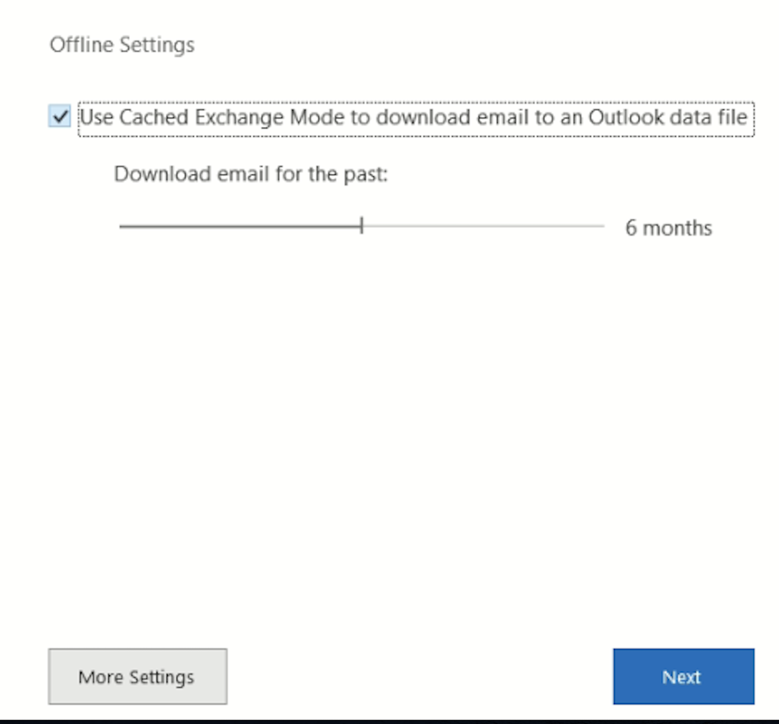 Outlook Cached email setting A