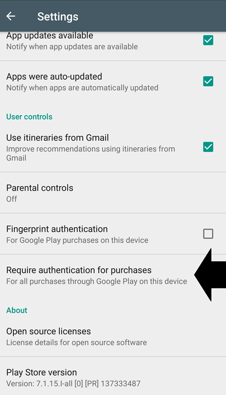 - On the settings page, look for and click on the “Require authentication for purchases”