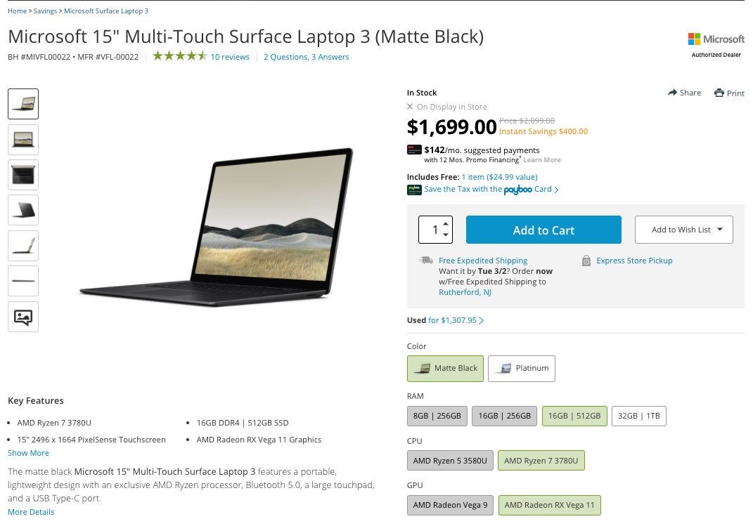 B&H Surface 3 laptop sale Feb 2021