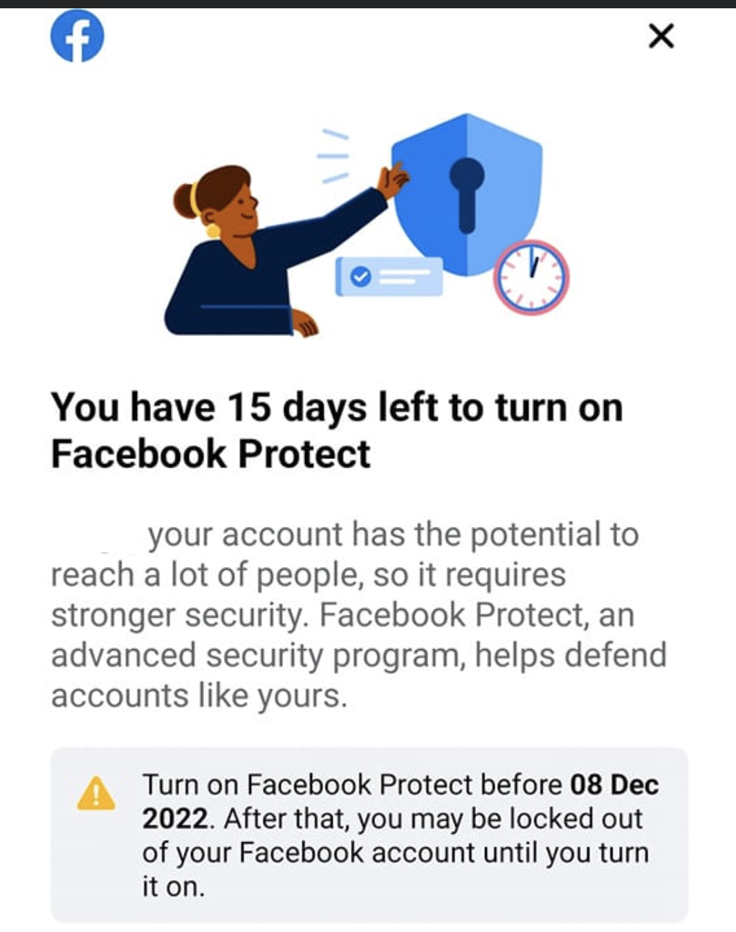 Facebook Protect Message